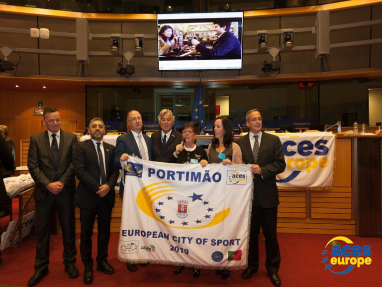 O Município de Portimão, representado pela presidente Isilda Gomes, recebeu ontem, em Bruxelas, das mãos de Gian Lupattelli, Presidente e fundador da ACES Europe (Associação