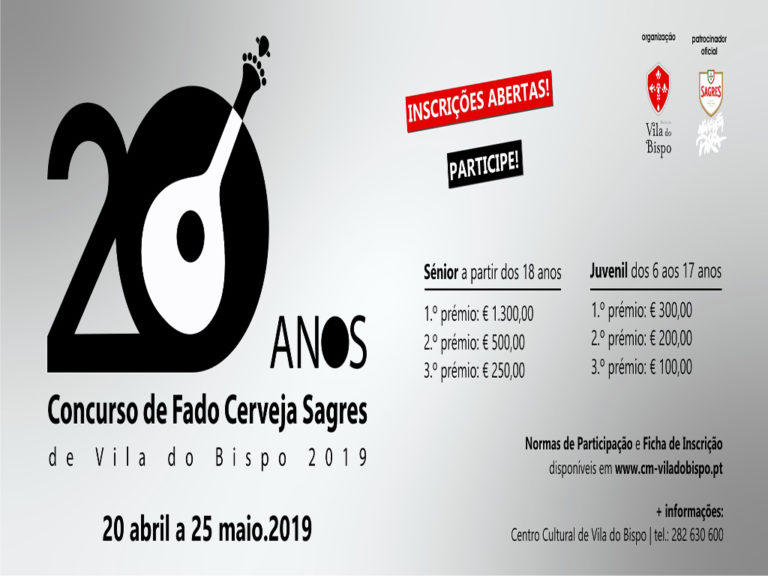 Já estão abertas as inscrições para a 20ª edição do Concurso de Fado Cerveja Sagres Concelho de Vila do Bispo, evento que que irá decorrer