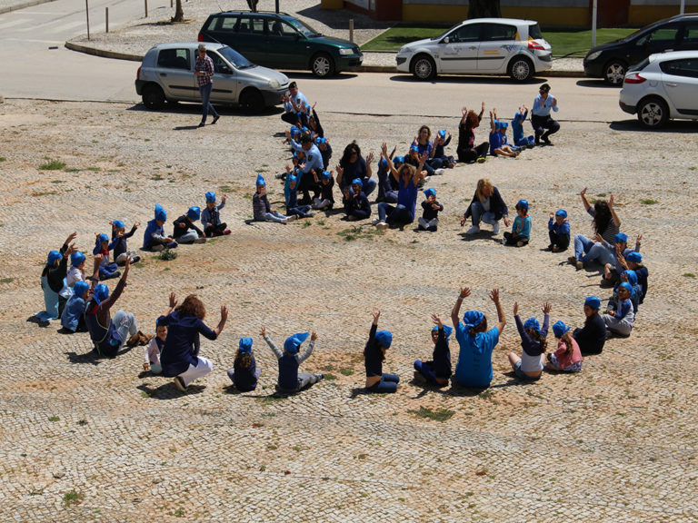 A Praça do Município transformou-se hoje, 30 de abril, num enorme laço azul humano para alertar a comunidade que a melhor forma de tratar o