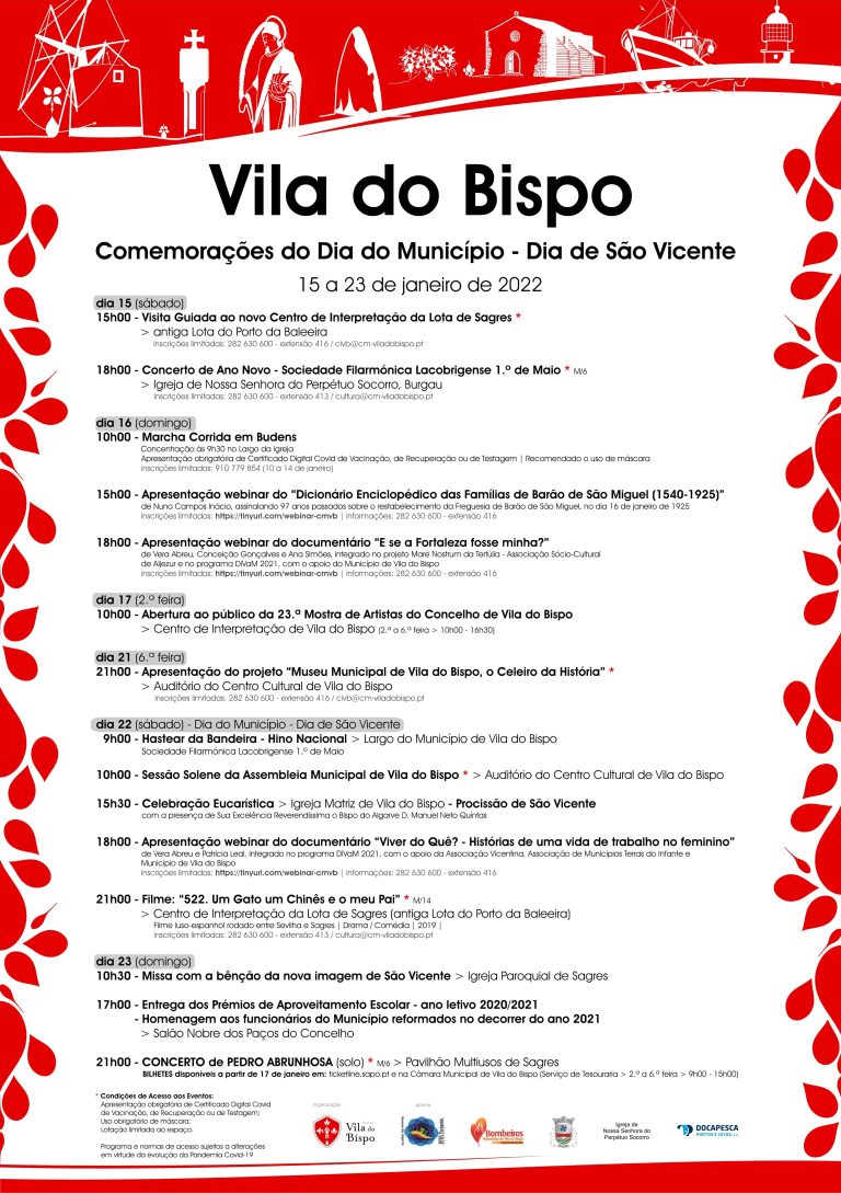 No próximo dia 22 de janeiro Vila do Bispo comemora o Dia do Município, celebrado em honra do seu padroeiro, São Vicente, que coincide com