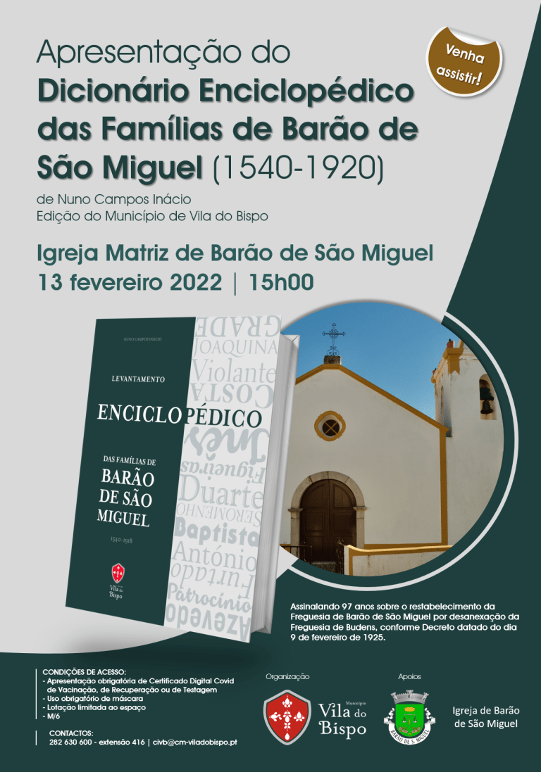 No próximo dia 13 de fevereiro, pelas 15h00, na Igreja Matriz de Barão de São Miguel, será apresentado o “Dicionário Enciclopédico das Famílias de Barão