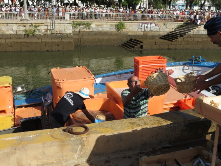 A azáfama característica do ambiente da antiga lota, com a acostagem da traineira “Arrifana” e da enviada “Moira” e a participação de meia centena de
