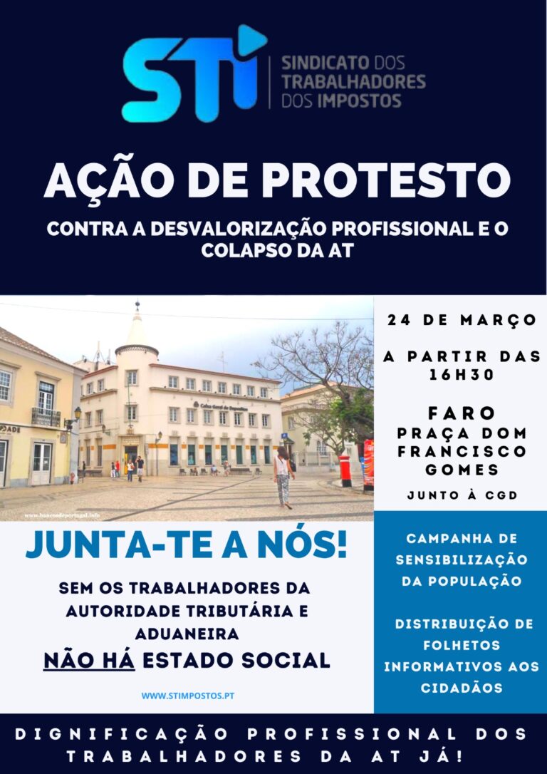 A Direção Distrital de Faro do Sindicato dos Trabalhadores dos Impostos (STI) promove, esta sexta-feira, 24 de Março, a partir das 16.30h, em Faro – na