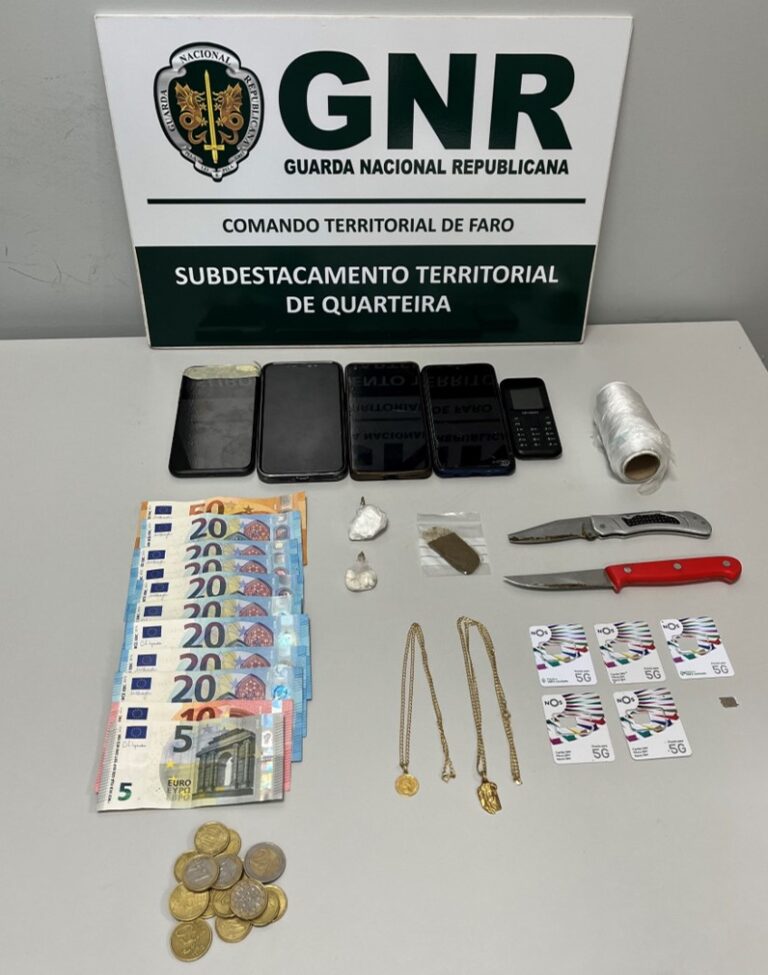 O Comando Territorial de Faro, através do Subdestacamento Territorial de Quarteira, no dia 7 de maio, deteve um homem de 23 anos por tráfico de