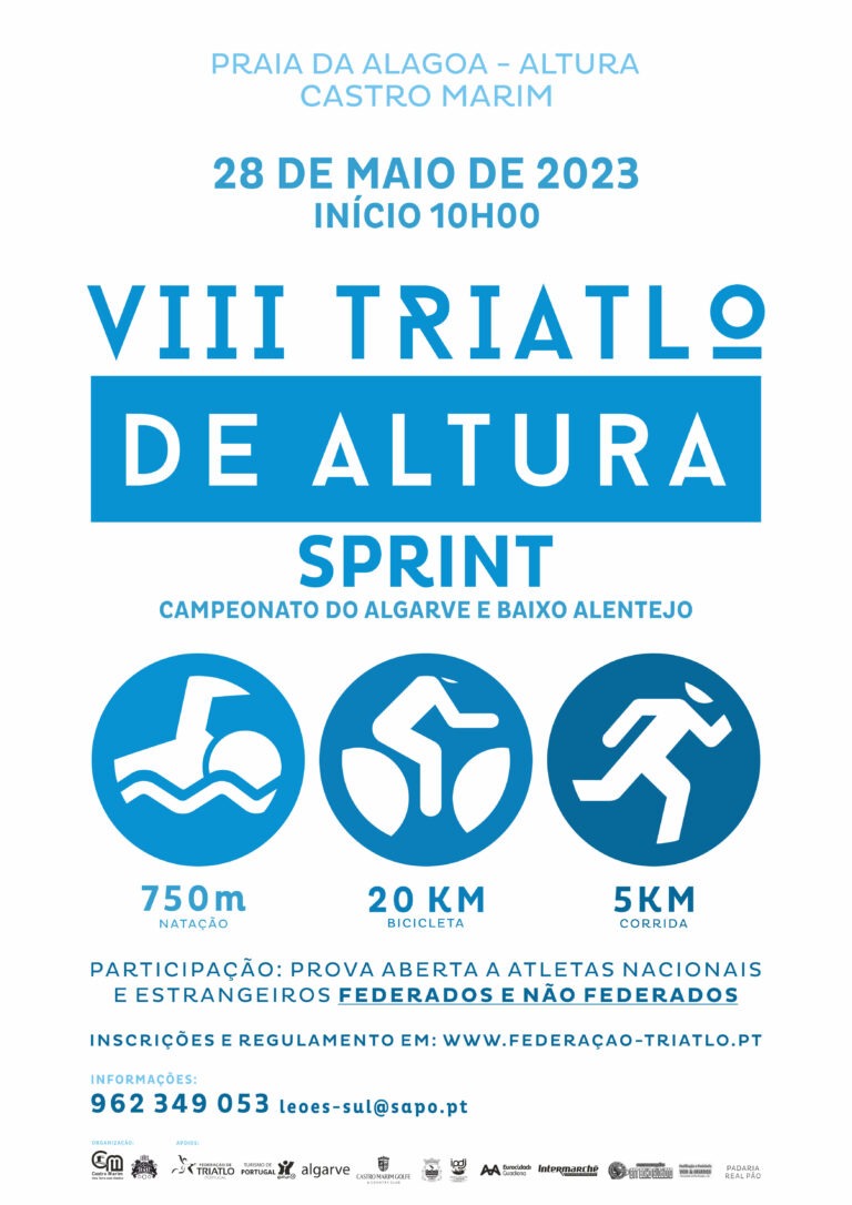 A Praia de Altura (Alagoa) recebe, no dia 28 de maio, pelas 10h00, o VIII Triatlo de Altura, em modalidade Sprint, uma prova integrada no