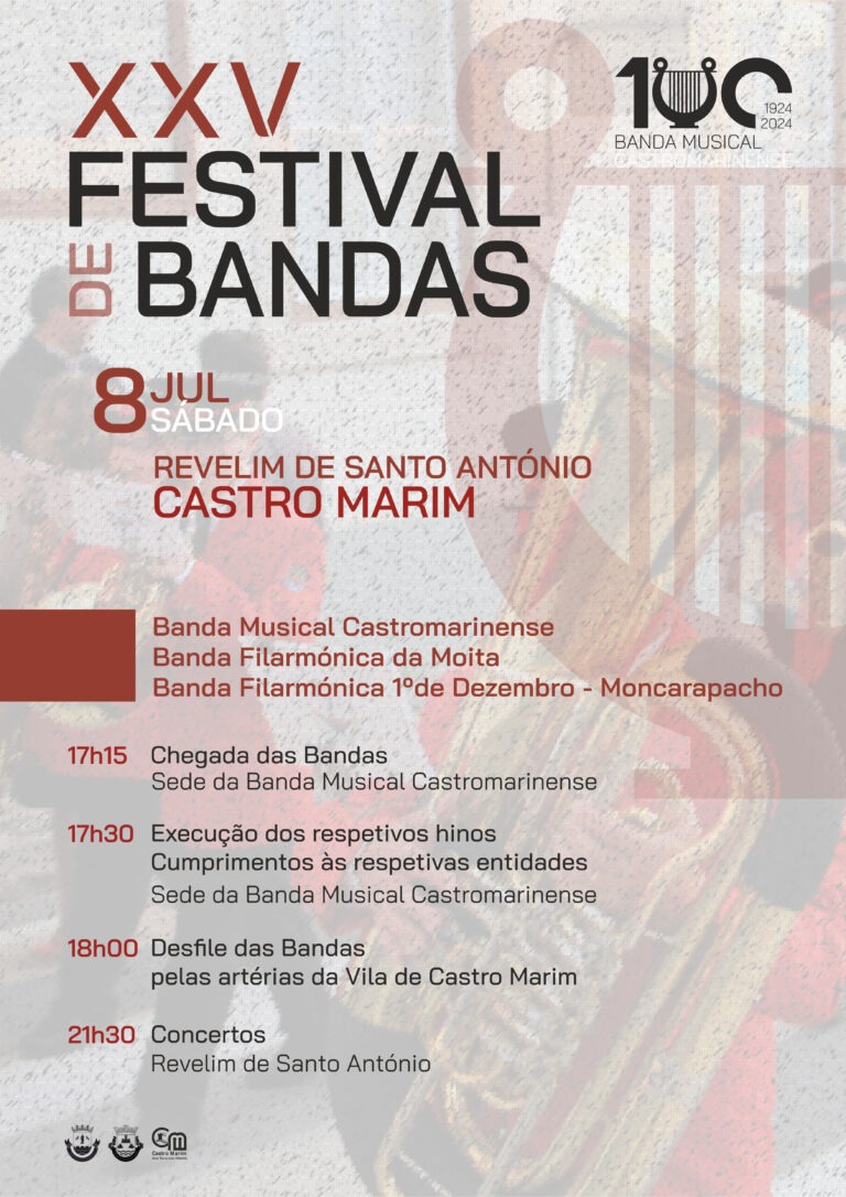 Numa iniciativa da Banda Musical Castromarinense realiza-se este sábado, dia 8 de julho, o XXV Festival de Bandas, na Praça 1º de Maio, com as