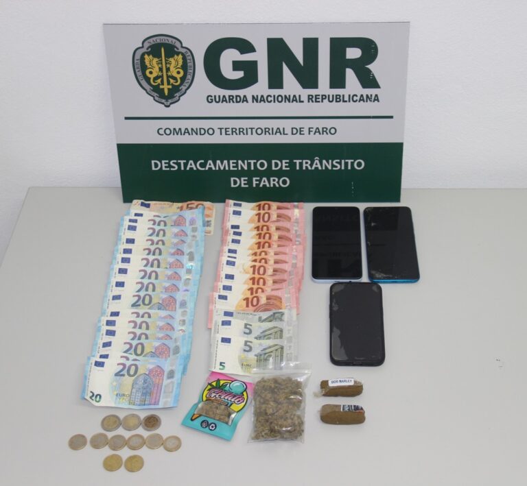 O Comando Territorial de Faro, através do Destacamento de Trânsito de Faro, deteve no dia 1 de julho, um homem de 23 anos por tráfico