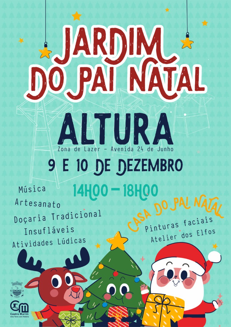 Nos dias 09 e 10 de dezembro, Altura vai transformar-se no Jardim do Pai Natal! A iniciativa tem lugar na zona de Lazer da Avenida