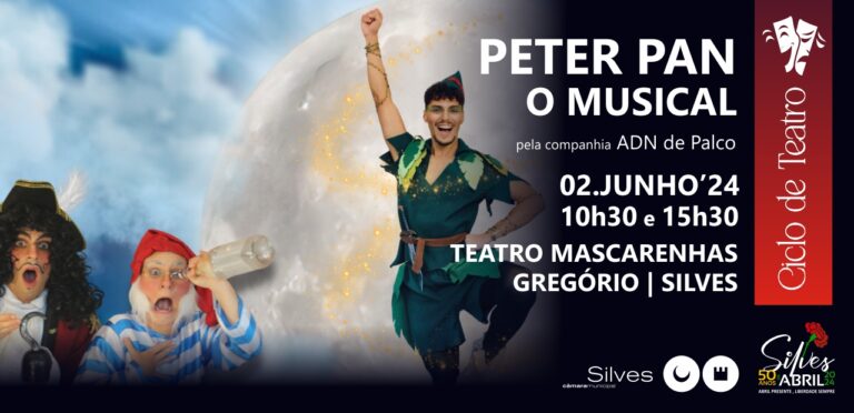 O Ciclo de Teatro do Município de Silves, prossegue com a apresentação do musical PETER PAN, no dia 02 de junho, pelas 10h30 e 15h30,