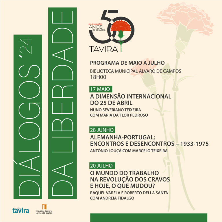 Dando continuidade às comemorações do 50.º aniversário do 25 de Abril de 1974, o Município de Tavira lança o ciclo “Diálogos da Liberdade”, uma iniciativa