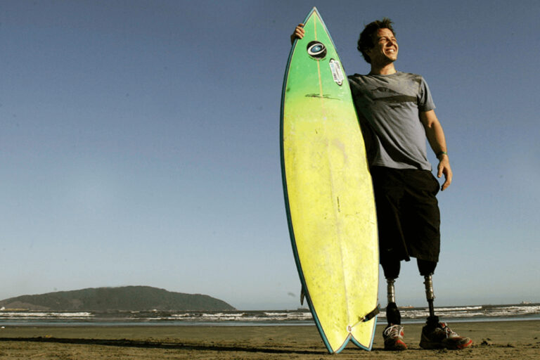 Brasileiro Pauê perdeu as duas pernas aos 18 anos, numa linha de comboio. Fará uma palestra gratuita e workshop na praia de Porto de Mós
