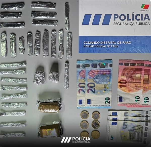 Autoridades apreenderam 244 doses de haxixe, cinco facas e 81,50 euros. José Manuel Oliveira Um rapaz, de 16 anos, e uma rapariga, com 17, foram detidos nos
