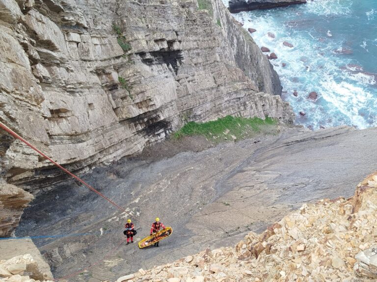 “Estava assustado e não conseguia subir a falésia”, o que levou à intervenção de uma equipa de salvamento em grande ângulo dos Bombeiros Voluntários de