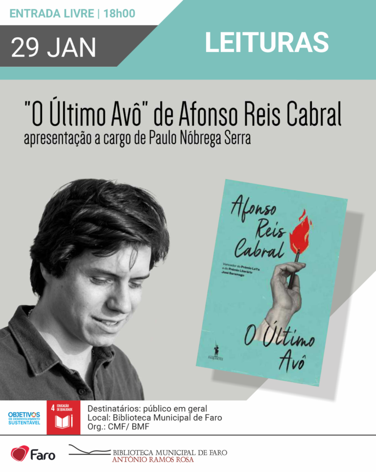 A Biblioteca Municipal de Faro recebe, no próximo dia 29 de janeiro, às 18h00, o escritor Afonso Reis Cabral, para uma sessão especial dedicada ao
