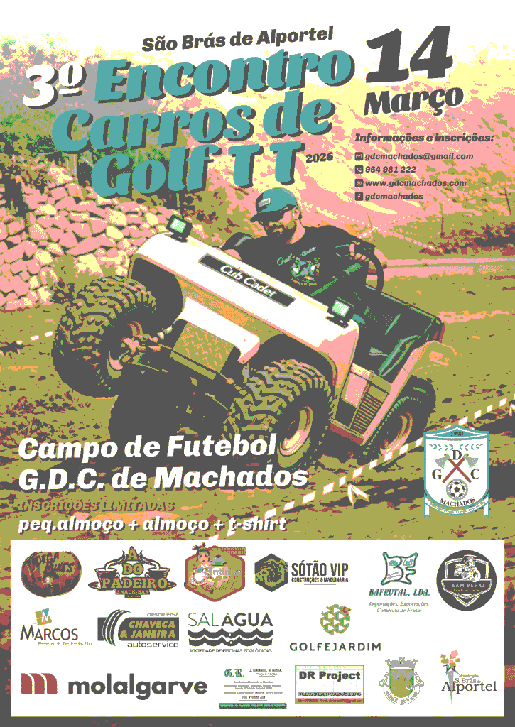 No próximo dia 14 de março, o Sítio dos Machados, no concelho de São Brás de Alportel, será palco do 3.º Encontro de Carros de Golf TT, um evento que promete juntar entusiastas do todo-o-terreno numa jornada marcada pela adrenalina, convívio e paixão pelos veículos modificados.