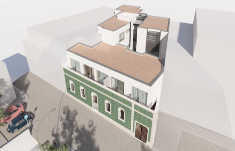 Implantado num lote de terreno de 353m2, a requalificação do imóvel permitirá criar 7 fogos para habitação, sendo 3 deles destinados a arrendamento apoiado (financiados pelo PRR – Plano de Recuperação e Resiliência em cerca de 430 mil euros) e 4 a arrendamento acessível.