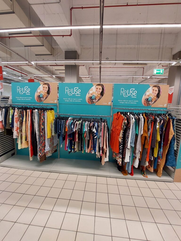 A Auchan Retail Portugal foi pioneira no retalho em Portugal ao introduzir a roupa em segunda mão à venda em grandes superfícies, e conta com o apoio logístico da MyCloma, plataforma online de venda de roupa em segunda mão, que dá resposta a toda a operação de receção e triagem da roupa.