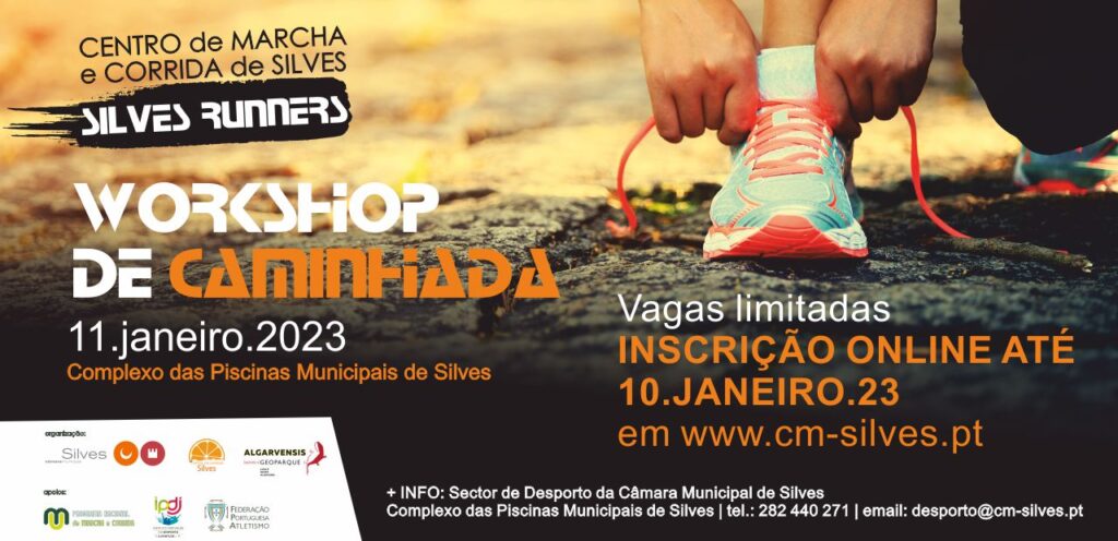 O Centro Municipal de Marcha e Corrida de Silves – Silves Runners (CMMCS) promove no próximo dia 11 de janeiro, um Workshop de Caminhada com dois temas – “Caminhar/Hike na Natureza” e “Começar a andar, e a descoberta das Caminhadas/Hiking”. A atividade, que integra o projeto Silves Runners, é gratuita e decorrerá no Parque da Cidade, junto ao Complexo das Piscinas Municipais de Silves, e zona sub-urbana de Silves.