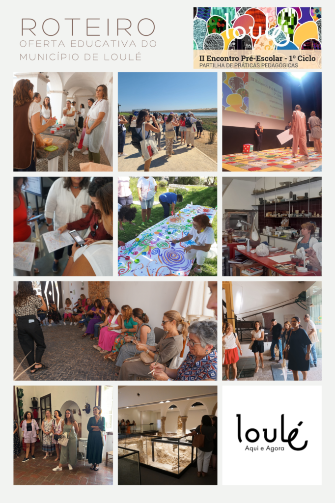 Durante a sessão foi ainda apresentada uma mostra das atividades desenvolvidas pelos Serviços Educativos da Câmara Municipal de Loulé e, no período da tarde, os participantes tiveram a oportunidade de acompanhar in loco as atividades propostas pelos diferentes serviços, nomeadamente os Banhos Islâmicos e Casa Senhorial dos Barreto, o Museu Municipal e Polo Museológico da Cozinha Tradicional, Polo Museológico Frutos Secos, e as ações “Introdução à arte da Empreita”, “Venha Descobrir a Sua Cidade”, “À Descoberta de Loulé”, atividades do Serviço de Proteção Civil nas Escolas, “Observação das Aves no Parque Natural da Ria Formosa”, “Mãos de Barro” e “Pensar Fora da Caixa”.
