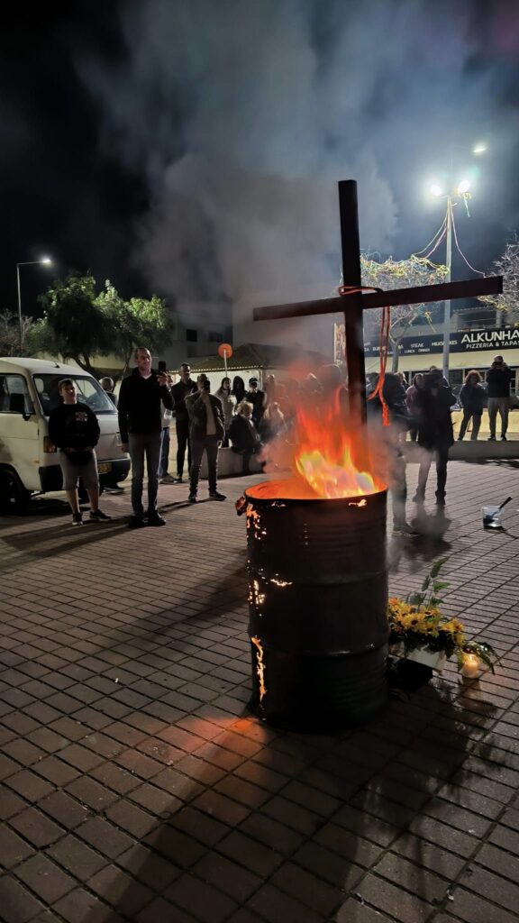 Em seguida, e ao contrário de sucedeu noutros anos, teve lugar a cremação, com o morto, que, afinal, não passava de um boneco, a arder num bidão de grandes dimensões. Pouco depois, e já com um altifalante ligado no recinto, Sofia Santos, presidente da Direção do Clube Desportivo de Odiáxere, entidade organizadora do Carnaval, agradeceu a ajuda, entre outros, do “Grupo de Amigos do Chinicato”, da “Câmara Municipal de Lagos”, da “Junta de Freguesia”, do “senhor José Franco”, também colaborador no evento, e de “Luís Morgado [presidente da Direção do Rancho Folclórico e Etnográfico de Odiáxere- n.d.r] que desempenhou “mais um ano” o papel de “padre” neste Enterro, e à sua colega “Tânia” Bandarriha. “Espero que tenham gostado e muito obrigado”, acrescentou Sofia Santos, depois de lamentar o mau tempo que acabou por condicionar os festejos do Carnaval antes do Entrudo.