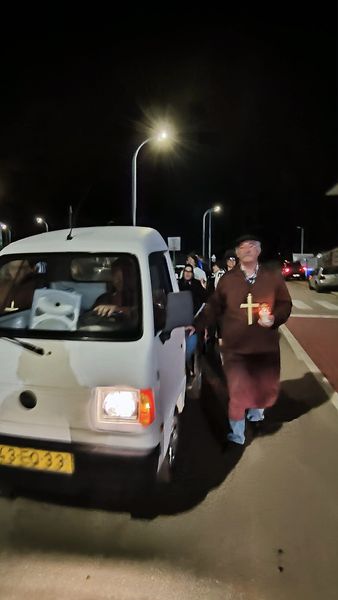 Enquanto o padre, com um balde e um pincel, em jeito de bênção, vai lançando água às pessoas, que, com curiosidade, se dirigem até ao exterior das habitações, um homem não esconde a sua ironia e diz-lhe: “Vocês vão enterrar o Carnaval a esta hora? O cemitério está fechado…” O cortejo prossegue, agora na Rua da Liberdade, passa a zona junto ao jardim, a poucos metros da Junta de Freguesia de Odiáxere e, pelas 21h.13m., prepara-se para atravessar a Estrada Nacional 125. Apesar da luz verde nos semáforos para o trânsito, os condutores dos carros preferem parar, até para ver o que se passa, os participantes no Enterro aproveitam a oportunidade e, após passarem para o outro lado da via, seguem num espaço junto a vários estabelecimentos comerciais em direcção à Rua da Barragem. São 21h.16m., a noite está escura e mais alguns residentes dirigem-se às janelas ou portas das suas casas também para se despediram da 28ª. edição do Carnaval de Odiáxere. Pouco depois, às 21h.21m., o cortejo chega, finalmente, ao Largo da Alegria, local de festa, música e dança, com comes e bebes à mistura, durante a tarde e noite do dia anterior, terça-feira de Entrudo, entre muita folia e carros alegóricos, e agora transformado em funeral… À espera da cerimónia final estão mais de duas dezenas de pessoas, dispersas por vários espaços. A viatura com a urna entra num pequeno largo, onde decorrem as cerimónias, juntando-se, como constatou o ‘Litoralgarve’, pouco mais de uma centena de pessoas.