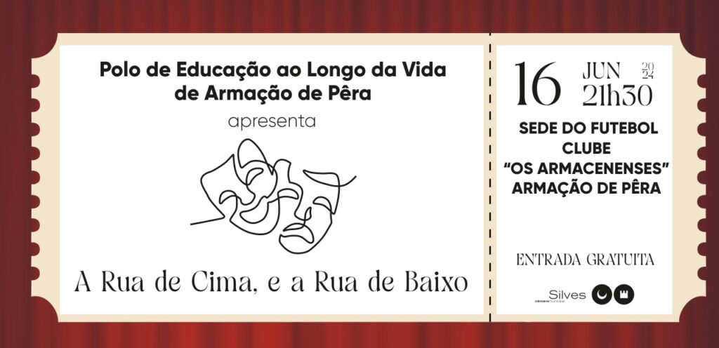 A peça de teatro “A Rua de Cima, e a Rua de Baixo”, protagonizada pelo Grupo de Teatro Sénior dos Polos de Educação ao Longo da Vida de Armação de Pêra, sobe ao palco principal da Sede do Clube “Os Armacenenses”, em Armação de Pêra, no próximo domingo, dia 16 de junho, pelas 21h30.