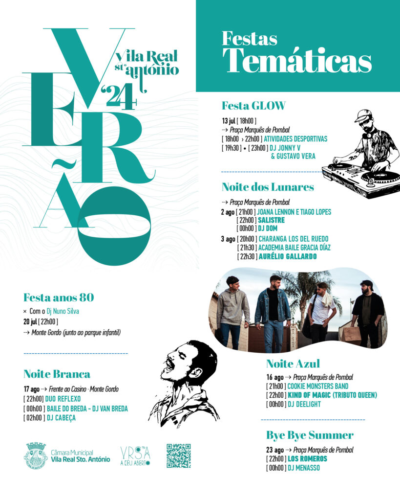 Todos os eventos têm entrada gratuita e estão inseridos no programa «Verão VRSA 2024», uma iniciativa promovida pela Câmara Municipal de Vila Real de Santo António, em parceria com as Juntas de Freguesia e as associações e coletividades locais.