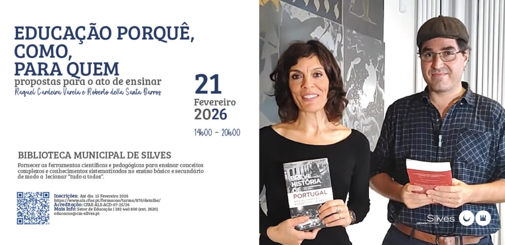 No próximo dia 21 de fevereiro, entre as 14h00 e as 20h00, terá lugar a ação de formação “Educação, Porquê, Para Quem: Propostas para o Ato de Ensinar” no auditório Biblioteca Municipal de Silves.