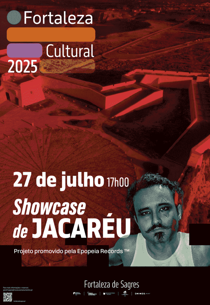 Nesse sentido, a Fortaleza de Sagres, em colaboração com a Epopeia Records, recebe no próximo domingo, dia 27 de julho, pelas 17 horas, o showcase de Jacaréu, artista que se apresenta entre batidas e ritmos do hip hop, poesia e crítica social. Tendo como base de inspiração a poesia e a música como veículo, num estilo recitado, unindo o indie-rap ao spoken word, as letras de Jacaréu são intervenientes e refletem as problemáticas atuais da sociedade contemporânea.