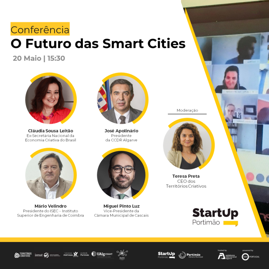 O debate, sob moderação de Teresa Preta, CEO dos Territórios Criativos, será online e totalmente em inglês, com a participação de Cláudia Sousa Leitão, ex-secretária nacional da Economia Criativa do Brasil, que partilhará a sua perspetiva como governante, José Apolinário, presidente da Comissão de Coordenação e Desenvolvimento Regional do Algarve, enquanto representante da região, Mário Velindro, presidente do Instituto Superior de Engenharia de Coimbra, que falará sobre os esforços da academia no desenvolvimento da temática em foco, e de Miguel Pinto Luz, vice-presidente da Câmara Municipal de Cascais, na linha da frente das cidades inteligentes.