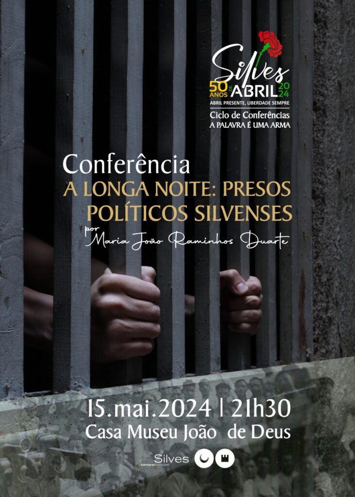 Terá lugar no próximo dia 15 de maio, pelas 21h30, na Casa-Museu João de Deus, em SB Messines, a palestra “A longa noite: presos políticos silvenses”. Promovida pelo Município de Silves, no âmbito do 50.º aniversário do 25 de Abril, a atividade, guiada pela investigadora Maria João Raminhos Duarte, fecha o ciclo de conferências “A palavra é uma arma”. A entrada é livre.
