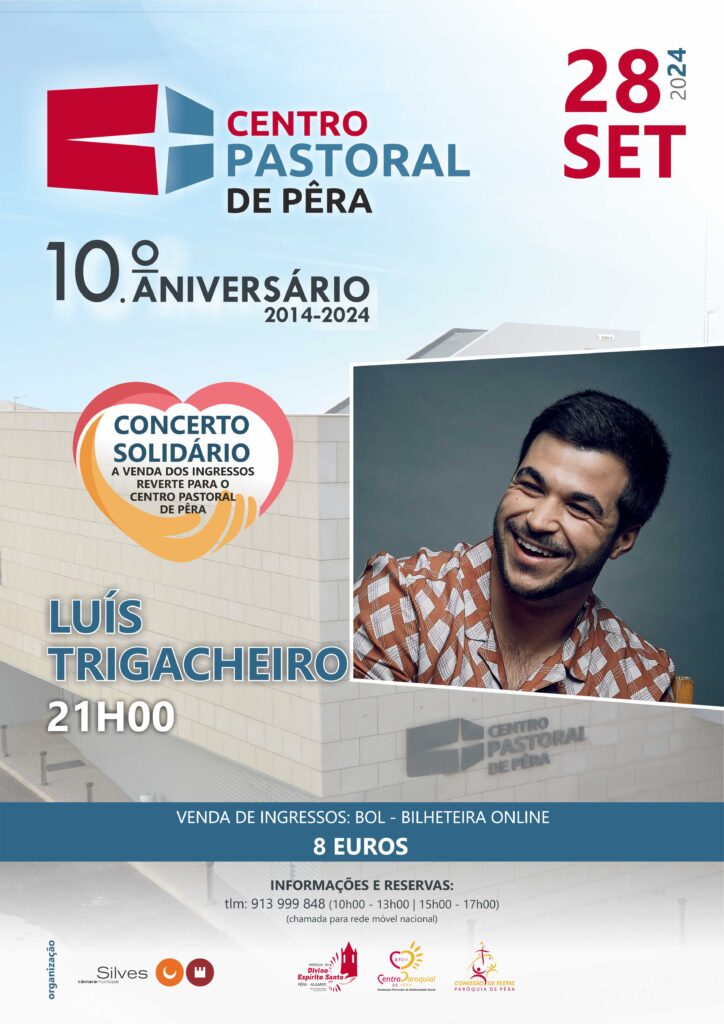 Compre o seu ingresso em https://cmsilves.bol.pt/Comprar/Bilhetes/144817-luis_trigacheiro-aud_centro_pasto_pera/ ou reserve diretamente no Centro Pastoral de Pêra de segunda a sexta feira das 10h00 às 13h00 e das 15h00 às 17h00 ou através do número 913 999 848.