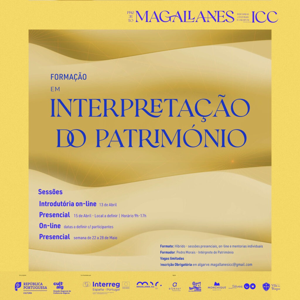 A DRCAlg promove uma ação de formação em interpretação do património, em formato presencial e on-line, com Pedro Morais (https://pedromorais.eu ), intérprete de património, doutorado pela Universidad Autónoma de Madrid, com tese sobre a componente educativa do ecoturismo, mestre em educação pela University of London e fundador da INTERPRETARE – Associação de Interpretação do Património Natural e Cultural. Esta é mais uma das atividades desenvolvidas pela DRCAlg no âmbito do projeto Magallanes_ICC, cujo objetivo é destacar a importância do conhecimento e investigação históricos no desenvolvimento do setor das indústrias culturais e criativas da região.