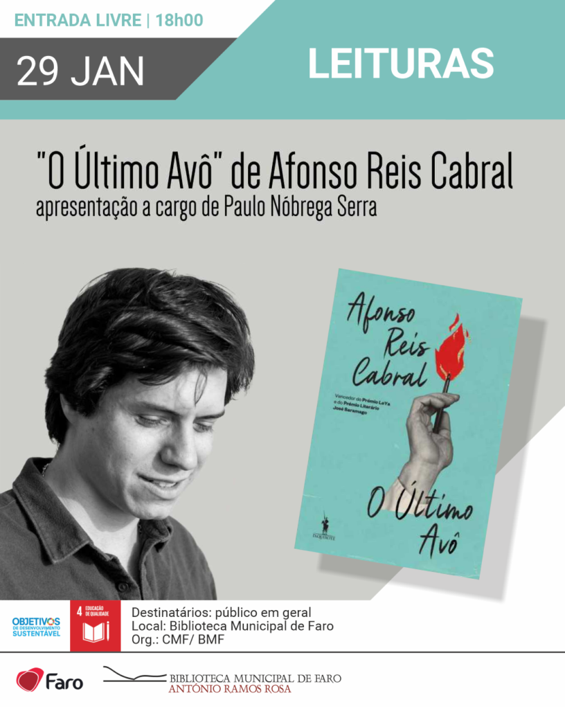 A Biblioteca Municipal de Faro recebe, no próximo dia 29 de janeiro, às 18h00, o escritor Afonso Reis Cabral, para uma sessão especial dedicada ao seu mais recente romance, O Último Avô.