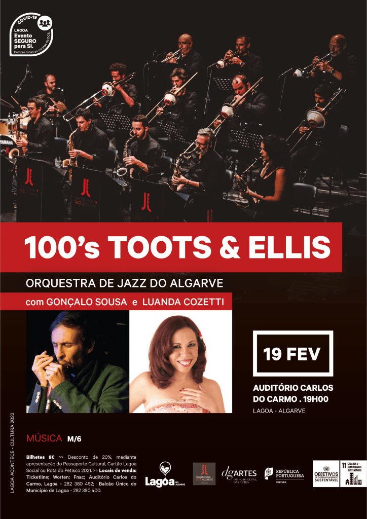Em fevereiro, a Orquestra de Jazz do Algarve traz o espetáculo “100’s Toots & Ellis” até ao palco do Auditório Carlos do Carmo. O concerto será no dia 19 de fevereiro, pelas 19h00 e, conta ainda com a participação dos convidados Gonçalo Sousa e Luanda Cozetti.
