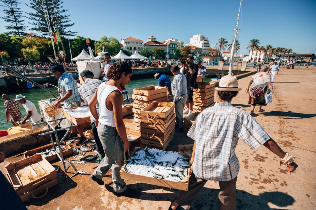 Após o leilão, o peixe era descarregado em caixas para ser gelado ou salgado e transportado em bicicletas, carrinhas, triciclos e motorizadas para o seu destino, enquanto crianças desviavam sardinhas, gerando algazarra com mergulhos no rio.