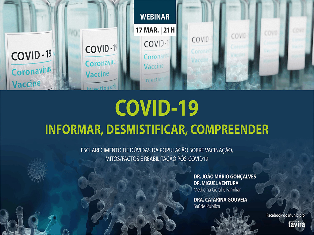 Decorre, no dia 17 de março, pelas 21h00, via Facebook do Município, o webinar “Covid-19: Informar, desmistificar, compreender”.