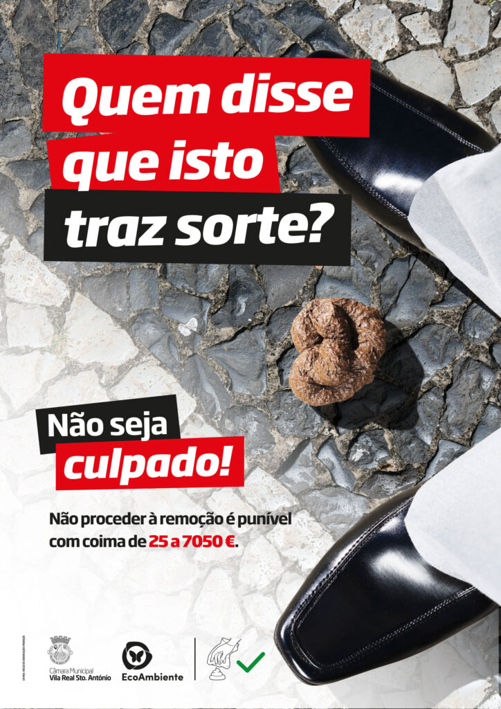 Além da vertente informativa, a campanha comunica a obrigatoriedade e responsabilidade dos donos na remoção dos dejetos caninos da via pública, relembrando que se não o fizerem estão sujeitos ao pagamento de coimas previstas no Regulamento Municipal de Resíduos e Limpeza Urbana do concelho de VRSA, cujos valores começam nos 25 euros e podem ultrapassar os 7 mil euros.